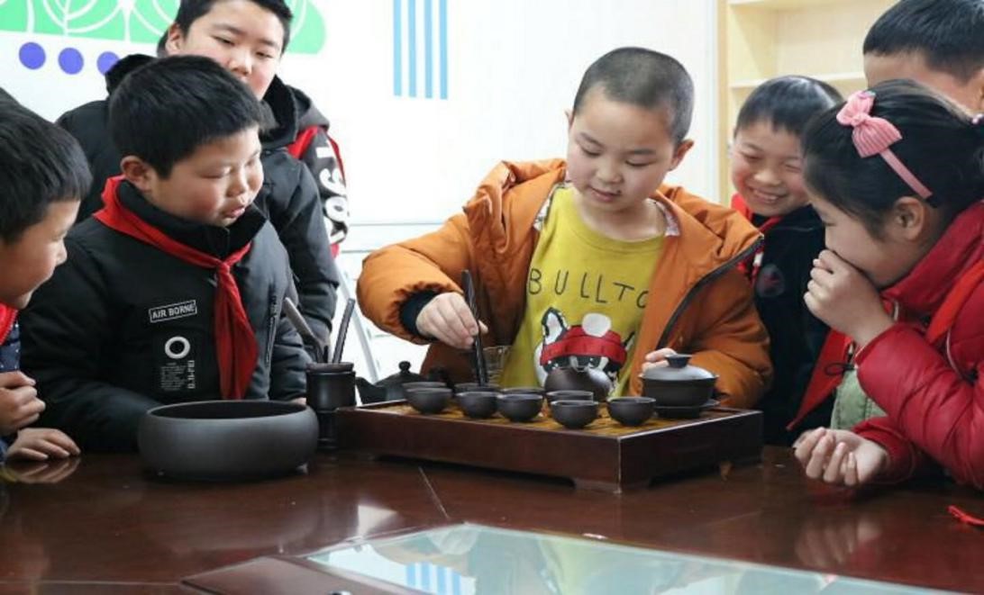 介绍了茶文化悠久的文化底蕴。第二个环节便是泡茶,梁卓超这次泡的便是武夷红茶。第三个环节,梁卓超让明珠小学的同学们按照刚才的演示去体验泡茶。