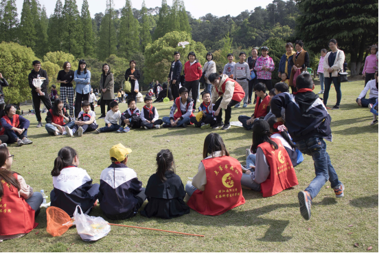 风筝绘制完毕后,需要静置等待晾干,志愿者们带领着小朋友们在海山公园拾捡垃圾,身体力行地教导小朋友们要爱护环境,珍惜资源。拾捡完垃圾后,志愿者们与小朋友们一同在草坪上玩起了丢手绢的游戏,大家围成一个圈坐在草地上,一个小朋友拿着手绢绕着其他小朋友和志愿者身后跑,乘其不意将手绢放在某一个人的身后,如果此人没有及时抓住丢手绢者,就到圈中为大家表演节目。