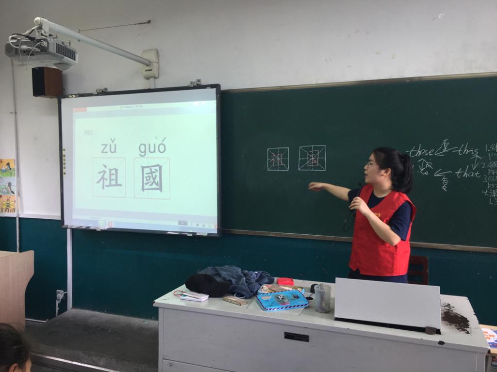 伴随着习习凉风,志愿者们也神采奕奕。本次书法课主要围绕方块字展开,“字称之为方块字,这是中国几千年来汉字书写规范的传统结论,字体四棱方正,清晰易认……”在志愿者的讲解下,课堂氛围渐渐变得热闹起来。正所谓实践出真知,在给每个小朋友发了田子练习纸后,大家迫不及待地挥动起手中的笔杆。在志愿者的协助与纠正下,小朋友们不断改正自己写的字,看到了小朋友们的不断进步,志愿者的成就感和自豪感油然而生!