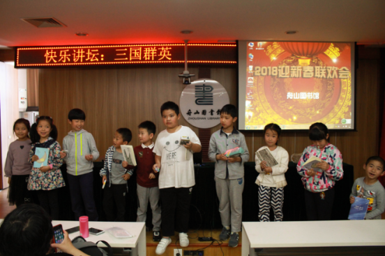 5月12日下午,经济与管理学院团委学生会青年志愿者分队于舟山市图书馆成功举办了快乐讲堂活动。本次活动由经济与管理学院青年志愿者负责,邀请了来自舟山众多小学的学生及家长们来共同学习中外闻名的——“趣味三国”。