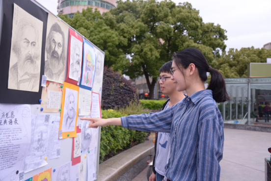 为纪念马克思诞辰200周年,5月4日—5日,浙江海洋大学东海科学技术学院于校内校外两地定点举办了“纪念马克思诞辰200周年”的公益书画展,50余副参展作品由东科学生亲手绘制,活灵活现的“马克思”吸引了无数市民驻足。