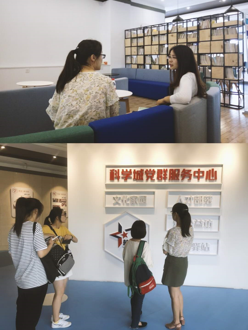 随后,在工作人员的带领下,调研团队参观了科学城党群服务中心,同时在工作人员的介绍下,了解了海洋科学城园区党组织架构和 “金融服务企业”等一系列“学读行”的支部活动。还创办了“芯学院”,倡导终身学习,传播创新理念,锻炼高尚品格。