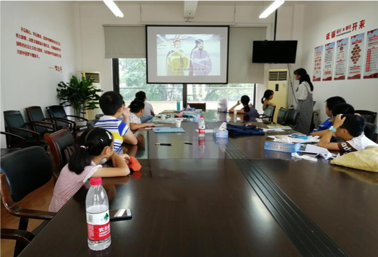 志愿者用事先准备好的PPT进行主题引入。“以史为鉴,可以知兴替”,这句话表明了历史的重要性。在课堂上,志愿者向小朋友们讲述了程门立雪、庄周梦蝶、洛阳纸贵等一些颇具寓意的故事,同时放了几个小视频,以助于小朋友们更好地理解历史故事中的内涵,最后用课堂回顾的方法,帮助小朋友们巩固学到的内容,并用问答的方式来检测小朋友们在课堂中吸收知识的效率。